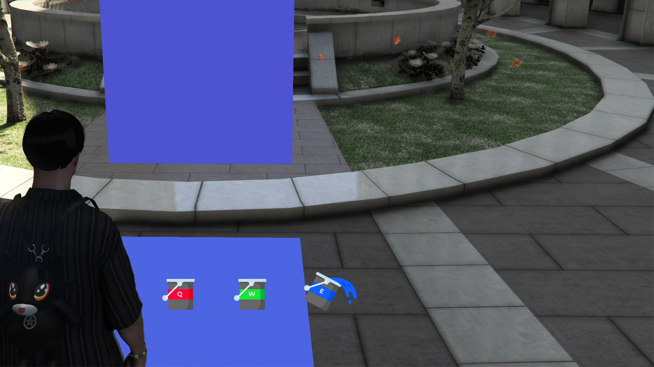 В первом задании надо смешать цвета в палитре RGB в соответствии с цветом куба впереди. Краска выливается зажатием клавиш Q W E. Тот игрок, чей цвет был наиболее приближённым к оригиналу, получает +1 балл.