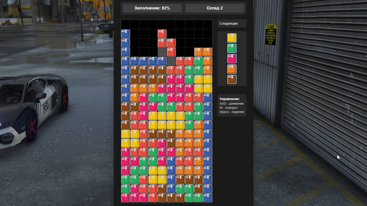 Во втором задании надо в формате тетриса заполнить несколько складов минимум на 80%. Фигуры опускаются медленно, поэтому их можно подгонять под пустые клетки, если позволяет пространство для манёвра.