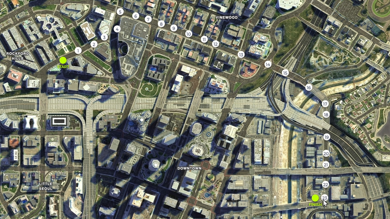 В первом задании надо построить оптимальный маршрут на карте до конечной точки (finish) и проехать по нему на фуре. Точки следует ставить близко друг к другу, иначе есть шанс ошибиться с проездом (точка окажется на мосту, а проехать надо под ним).